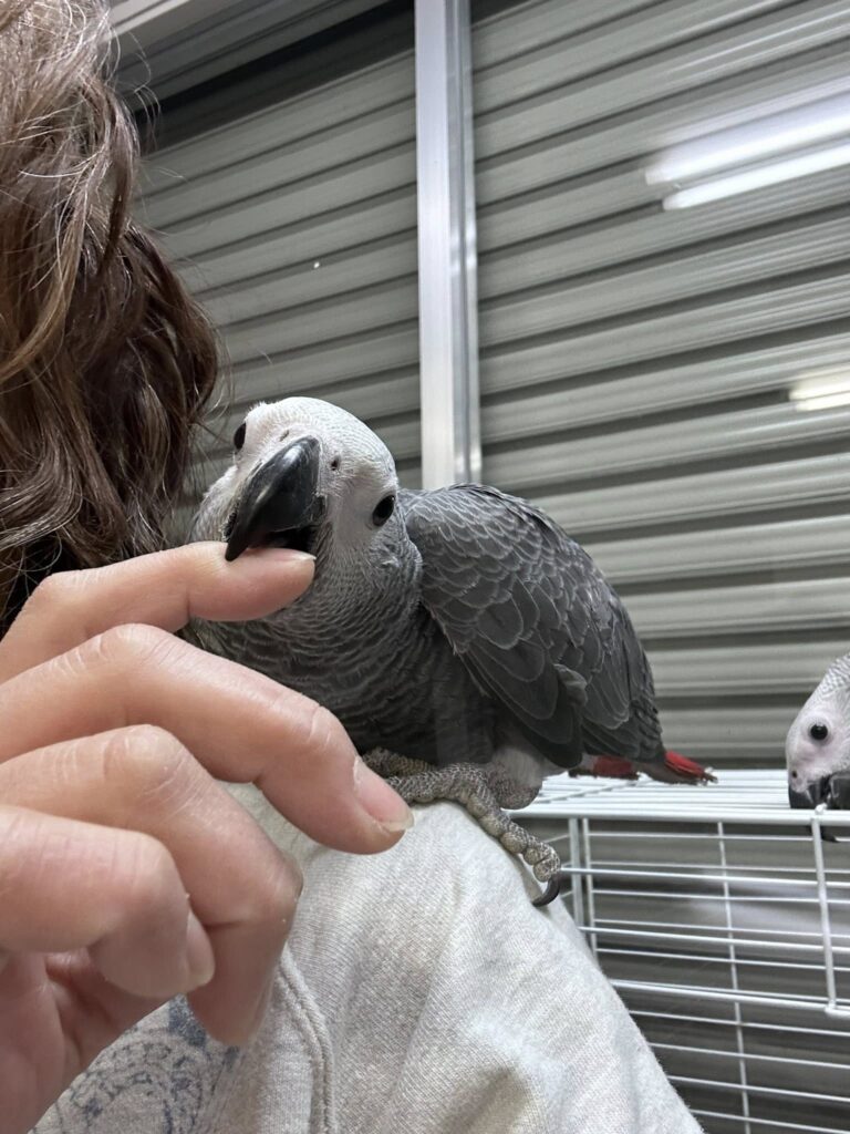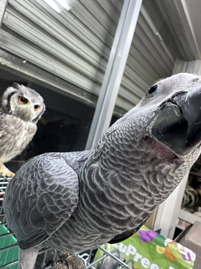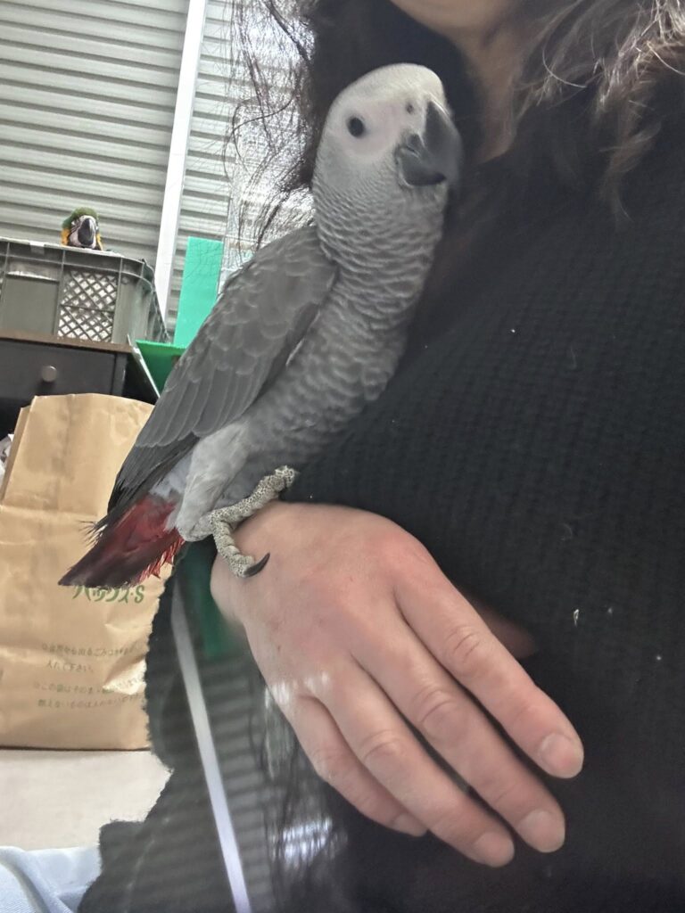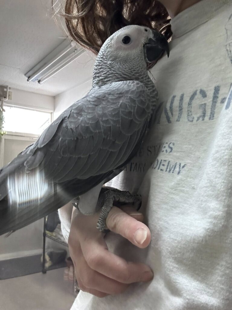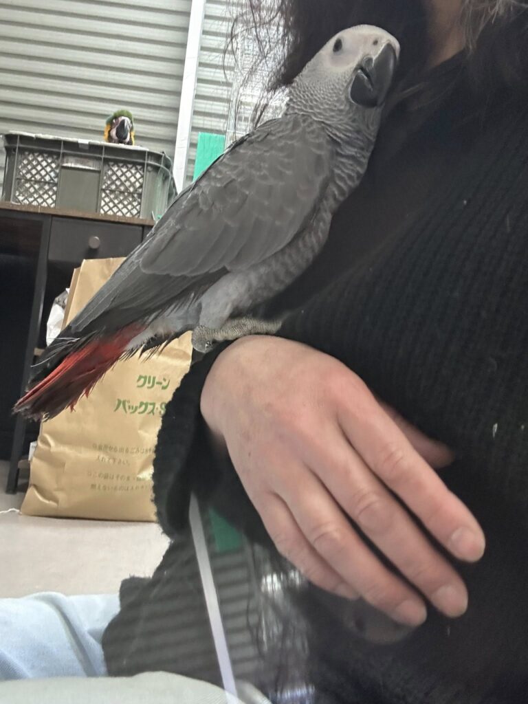今回の子はおしゃべりを覚えやすいオスです。ぺらぺらとしゃべるヨウムに憧れてお迎えを考えている方はこの機会を逃さないよう。