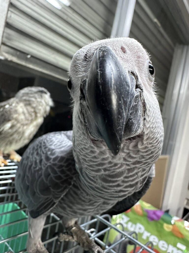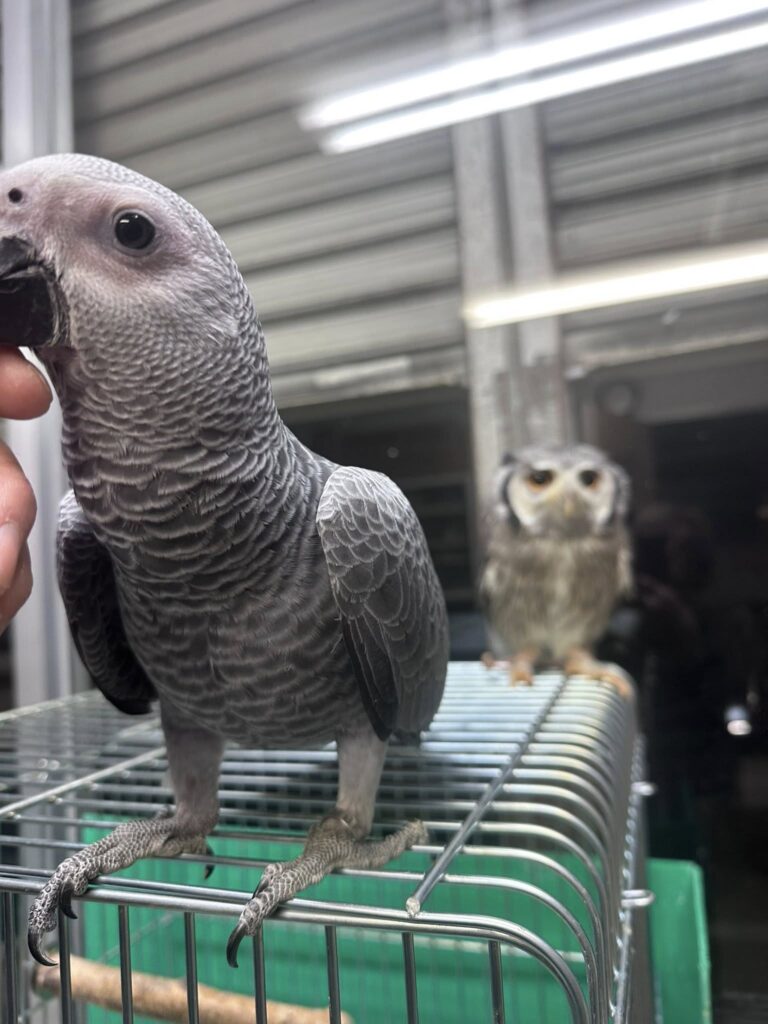 先日入荷したヨウム幼鳥、1羽はお迎えが決まりました。もう1羽は挿餌が終了し、大人と同じケージとペレットでの飼育になったので、挿餌に自信のない方やお仕事で忙しい方もお迎え時となりました。